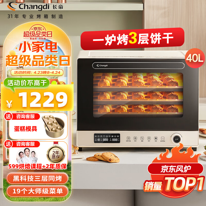 长帝(changdi)家用风炉电烤箱 40升专业多功能烤箱 搪瓷内胆 多层同烤 长帝大白鲸价格:1269.00元!