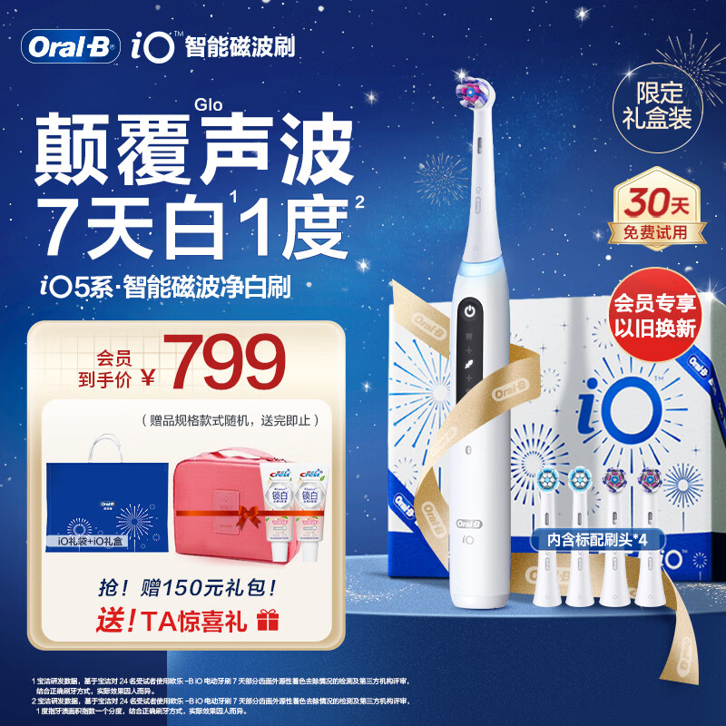 欧乐B成人电动牙刷iO5净白磁波刷甄选礼盒iO系列圆头智能护龈送男友送女友情侣送礼生日礼物母亲节礼物价格:879.00元!