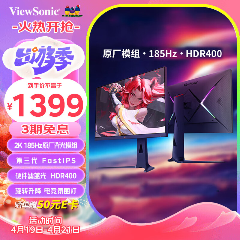 优派27英寸原厂背光 2K 185Hz(超频) FastIPS 1ms(GtG) 旋转升降 HDR400猛擎满血电竞显示器VX2781价格:1599.00元!