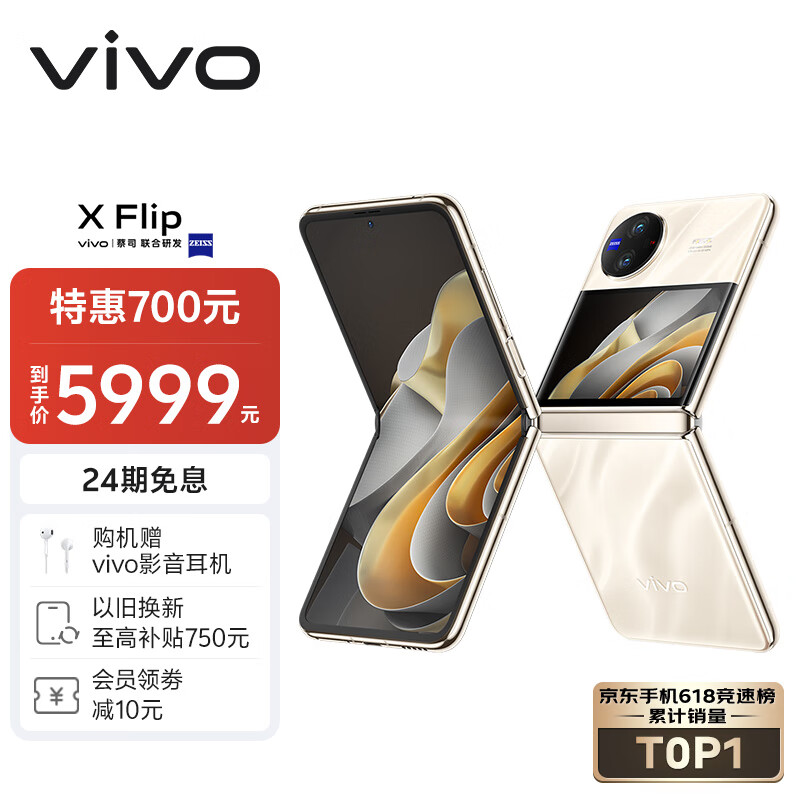vivo X Flip 12GB+512GB 绸金 轻巧优雅设计 魔镜大外屏 悬停蔡司影像 骁龙8+ 芯片 5G 折叠屏手机 xflip价格:5999.00元!