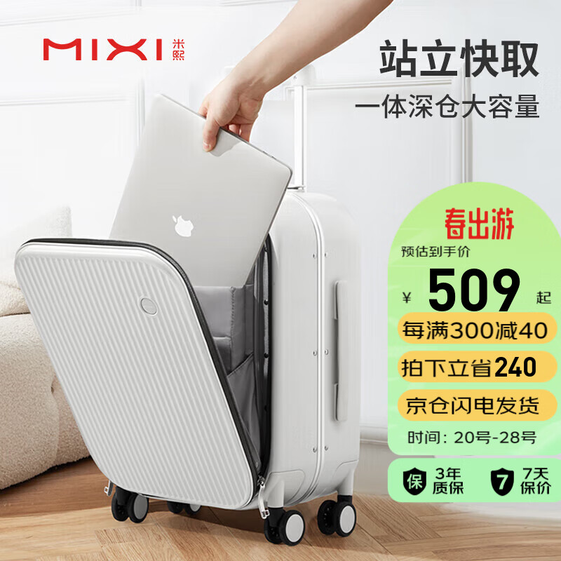 米熙前开盖铝框箱包拉杆箱子密码箱行李箱大容量旅行箱男24英寸烟白70价格:749.00元!