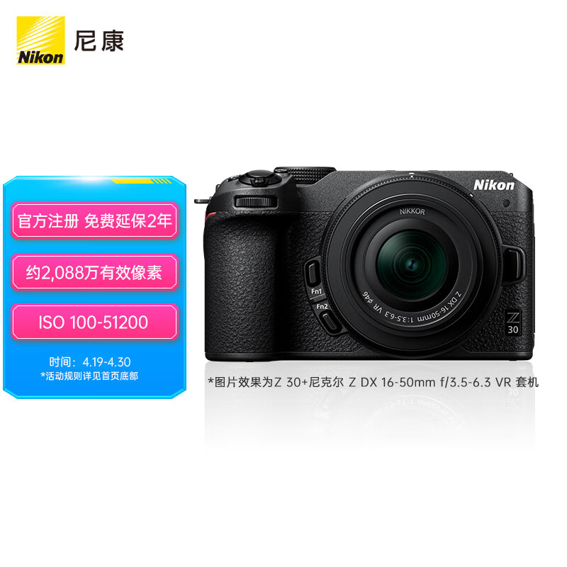 尼康(Nikon)Z30 微单相机 微单机身 无反相机 半画幅(Z DX 16-50mm f/3.5-6.3 VR)4K超高清视频价格:6799.00元!