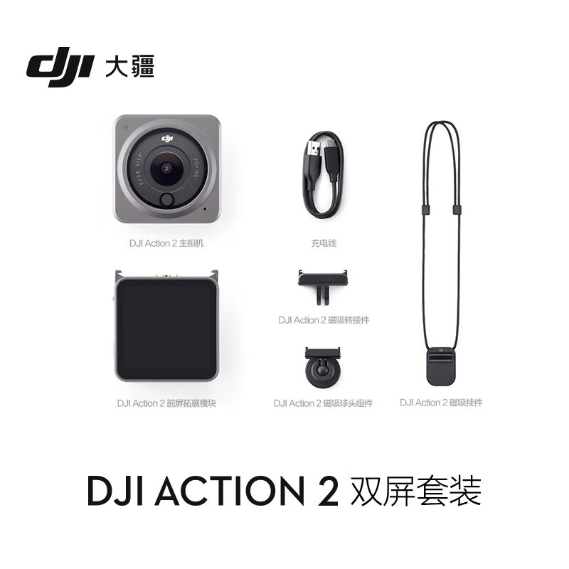 大疆 DJI Action 2 双屏套装(32GB)灵眸小型手持防水防抖vlog相机 摄像机+随心换2年版+128G内存卡价格:2152.90元!