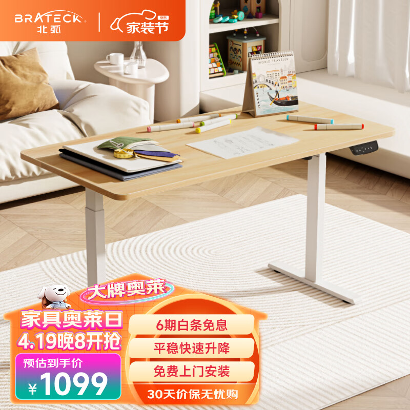 Brateck电动升降电脑桌 北弧站立办公升降书桌 工作升降台 K2黄1.2米价格:1299.00元!