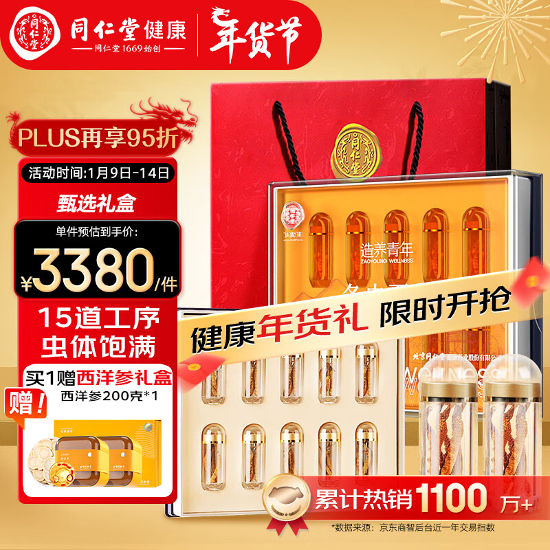 北京同仁堂【年货礼品】冬虫夏草-50/10g 虫草礼盒 虫体饱满 洁净度高 可泡酒磨粉 滋补品 送父母长辈送礼价格:3380.00元!