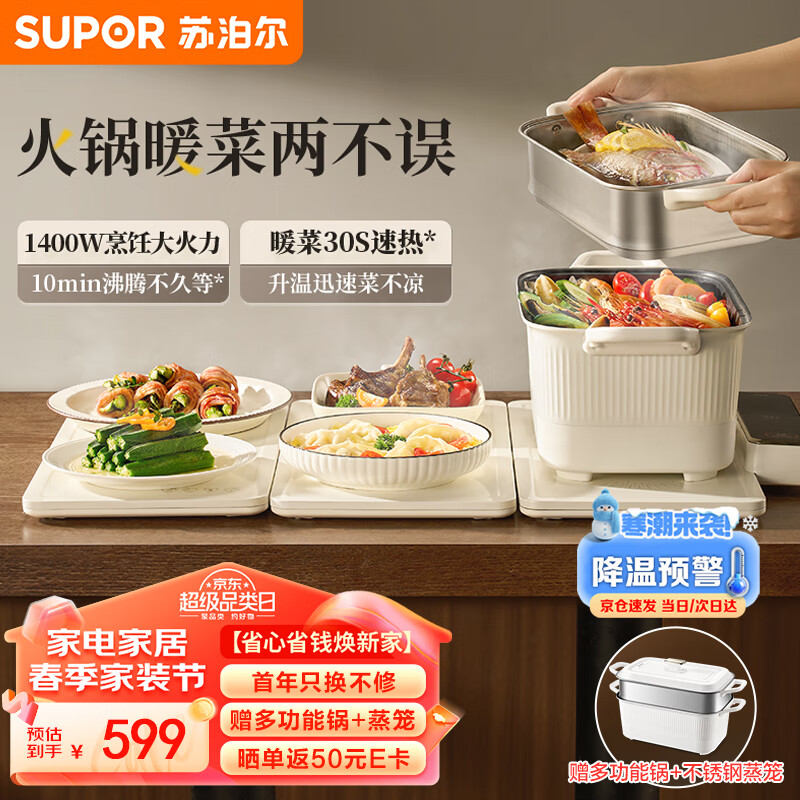 苏泊尔折叠暖菜板 饭菜保温板热菜板 加热桌垫菜板 多功能带电磁炉热菜煮火锅(方形) BF6040P823D价格:599.00元!