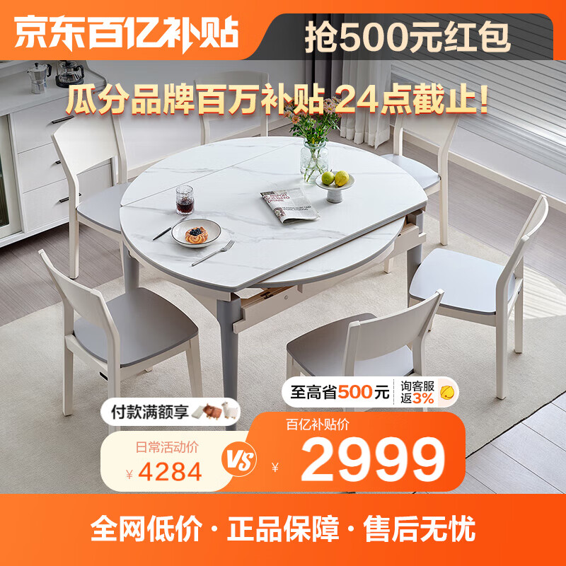 全友家居 餐桌椅 现代简约餐桌椅 可伸缩折叠岩板餐桌DW1028K价格:2999.00元!