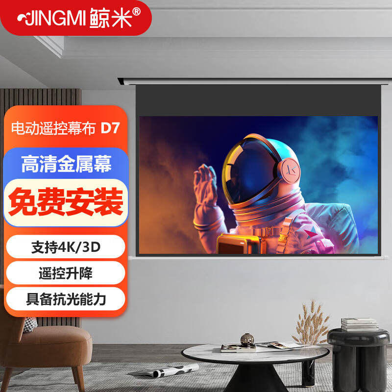 鲸米(JINGMI)投影幕布180英寸16:9电动遥控升降幕布D7高清金属3D家用影院客厅办公投影仪幕布屏幕价格:4199.00元!