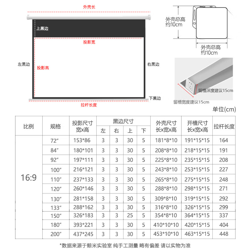 鲸米银河系电动遥控幕布高清金属180英寸16:9配置参数: