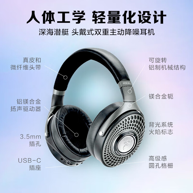 FOCAL the spirit of sound劲浪耳机 Bathys 深海潜艇 头戴式双重主动降噪 带麦hifi发烧级无线蓝牙 DAC 3.5 USB 降噪乌耳麦价格:5880.00元!