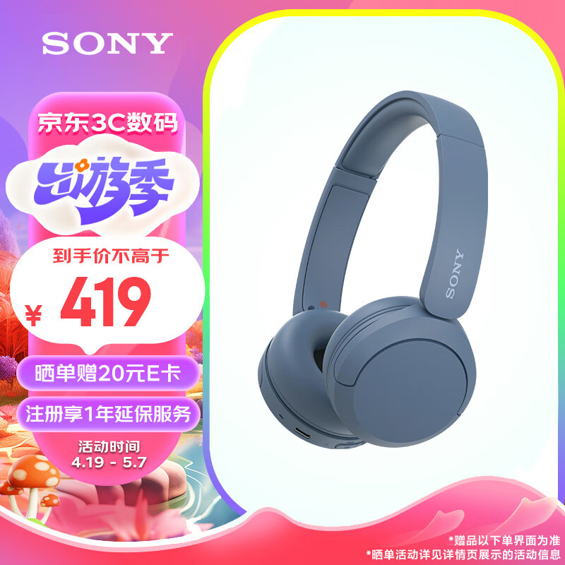索尼(SONY)WH-CH520 舒适高效无线头戴式蓝牙耳机 舒适佩戴 音乐耳机 蓝色价格:449.00元!