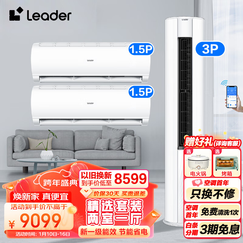 Leader空调海尔智家出品大3匹立式空调1.5匹挂机一级能效变频冷暖自清洁柜机家用空调套装WDB+XCA[家电]价格:9099.00元!