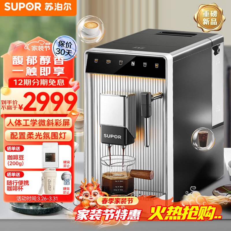 苏泊尔(SUPOR)意式家用浓缩萃取全自动咖啡机 礼物送长辈 办公室商用奶泡研磨一体机 半自动现磨咖啡 SW-CFA101价格:2999.00元!