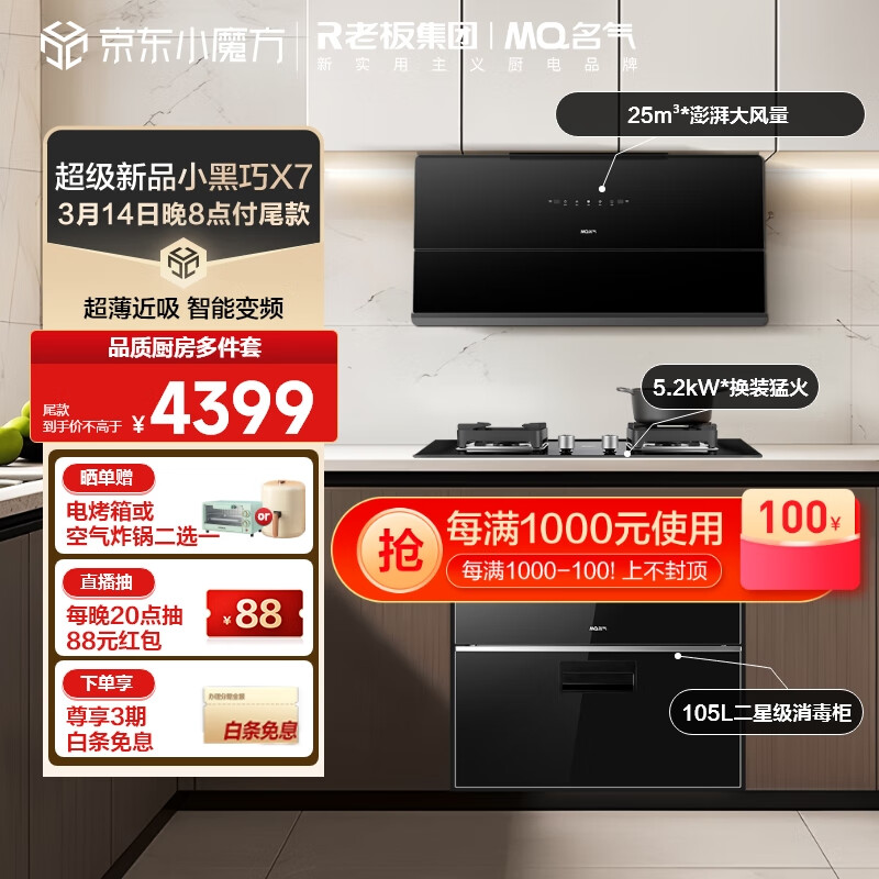 名气老板抽油烟机超薄近吸25大风量5.2猛火燃气灶具消毒柜烟灶消三件套X7+A6812BT+X101A天然气价格:4199.00元!