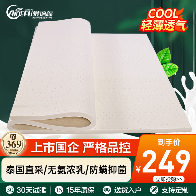 爱德福乳胶床垫?薄款3cm进口泰国天然橡胶榻榻米薄垫子90*190*2价格:249.00元!