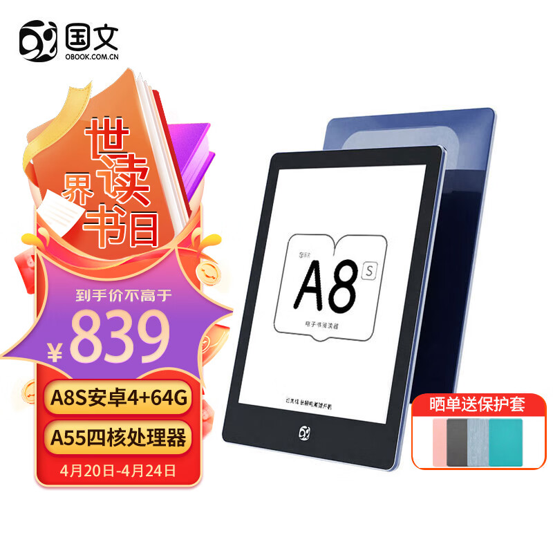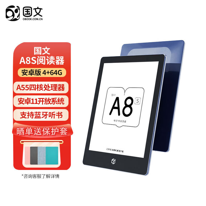 国文 A8S安卓电子书阅读器6英寸高清墨水屏办公小说开放系统护眼微信读书电纸书电子书阅览器4+64G价格:839.00元!