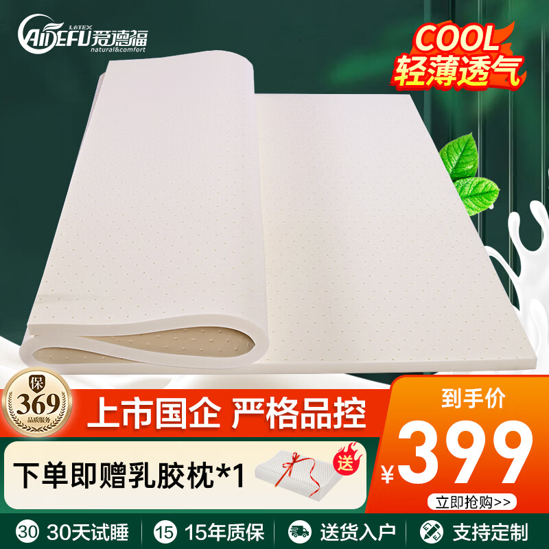 爱德福乳胶床垫 薄款3cm泰国天然橡胶2cm榻榻米床褥 可定制90*200*4cm价格:449.00元!