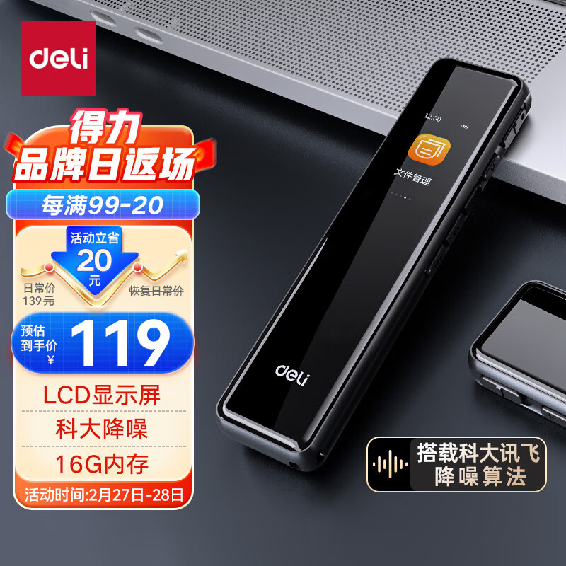 得力录音笔 录音神器 便携式随身 录音设备专业录音 超长待机 录音笔学习会议培训 16G MP302价格:139.00元!