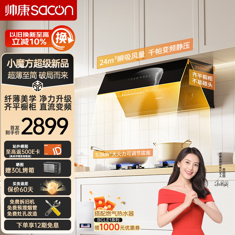 帅康(Sacon)抽油烟机超薄侧吸油烟机套装 家用24m3爆炒大风量自清洗超薄眼烟灶套装C8315+LB850B1液化气厂发价格:2899.00元!