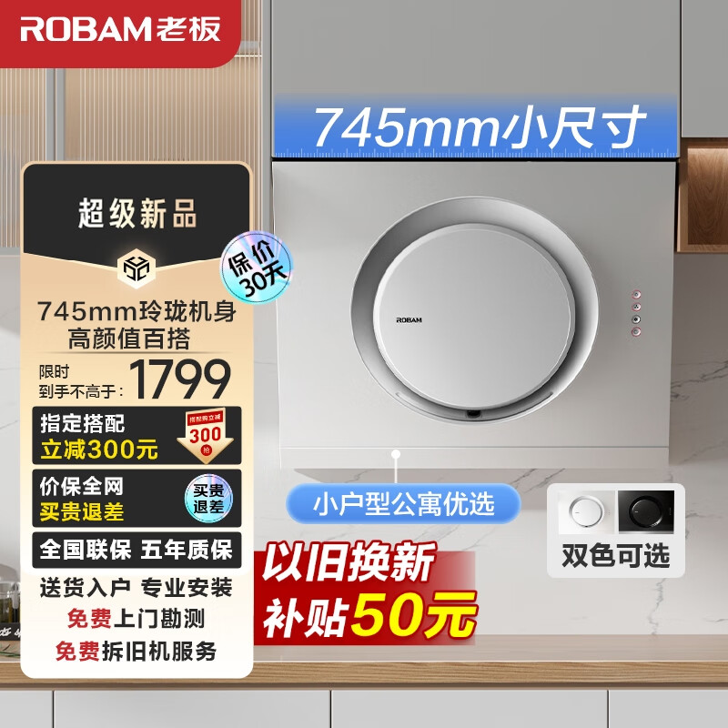 老板(Robam)小户型油烟机侧吸式吸脱排油烟机小尺寸大吸力一级能效低噪白色抽油烟机家用高颜值简约烟机21A6H价格:1440.00元!