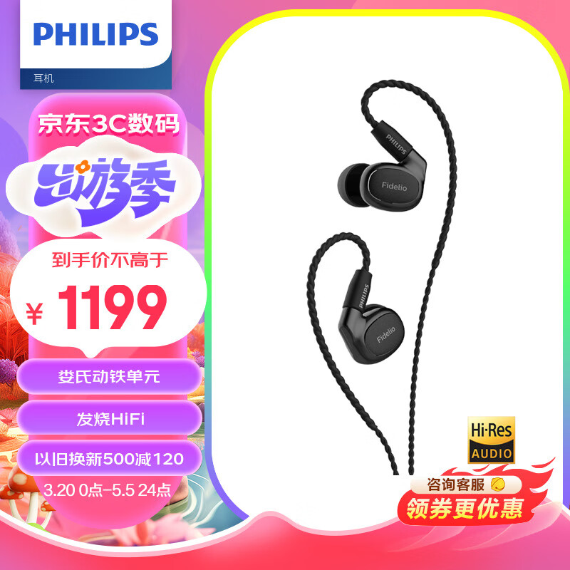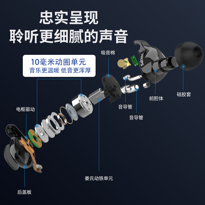 飞利浦(PHILIPS)有线耳机入耳式HiFi耳机动圈加动铁发烧音乐耳机高保真耳机3.5mm音频接口S301黑价格:1199.00元!