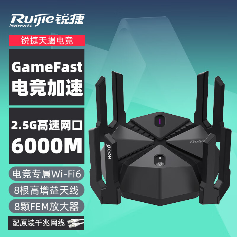 锐捷(Ruijie)星耀天蝎电竞路由器X60PRO 无线千兆WiFi6 穿墙王ax6000 5G游戏加速 6000M 2.5G网口价格:599.00元!