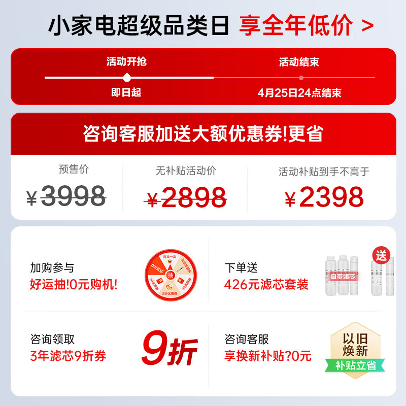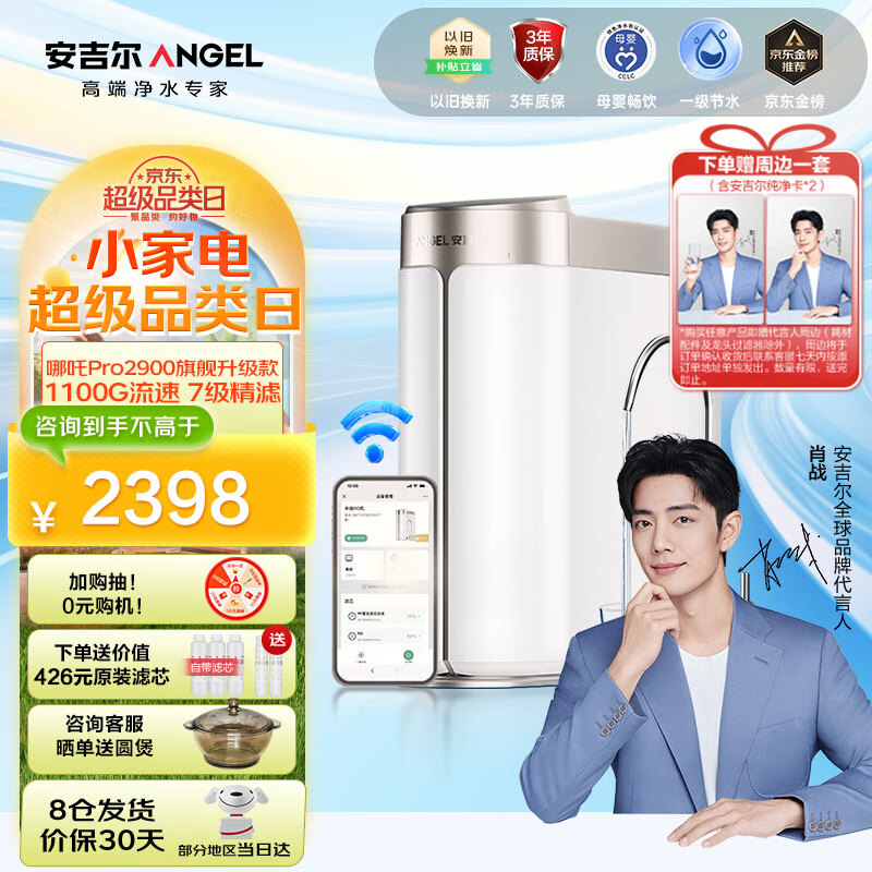 安吉尔安吉尔肖战代言 净水器家用直饮哪吒1100G流速体验2.85L/min 自来水反渗透厨房纯水机 哪吒pro2900 【升级双水款-99%选择】【1100G净水体验】价格:2698.00元!