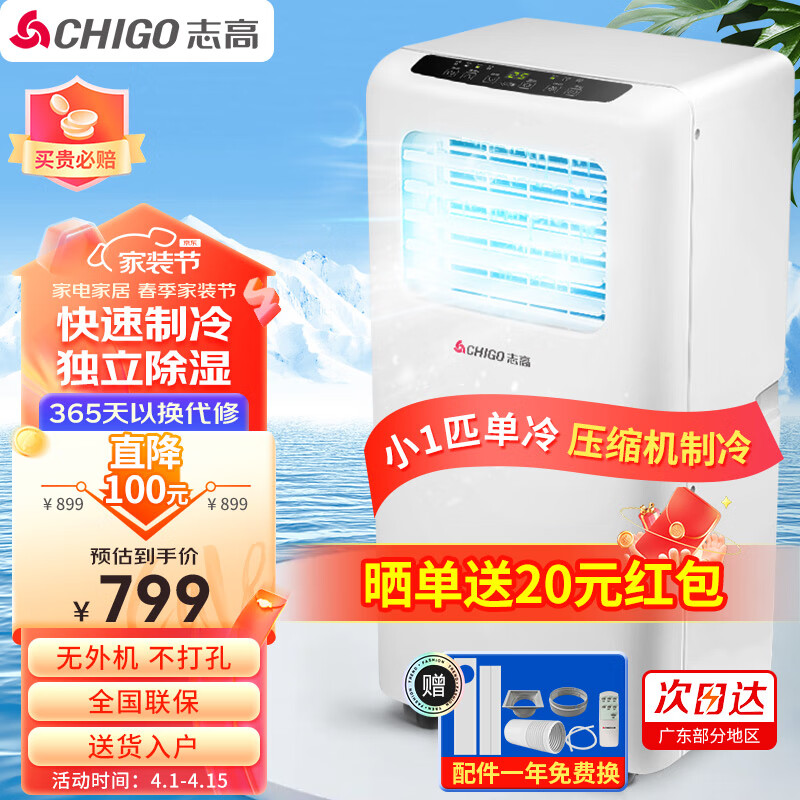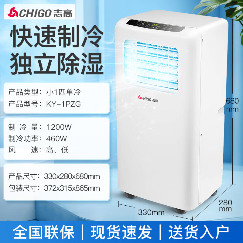 志高(CHIGO)移动空调1匹单冷 家用空调一体机免安装免排水无外机客厅厨房立式小空调KY-1PZG价格:799.00元!