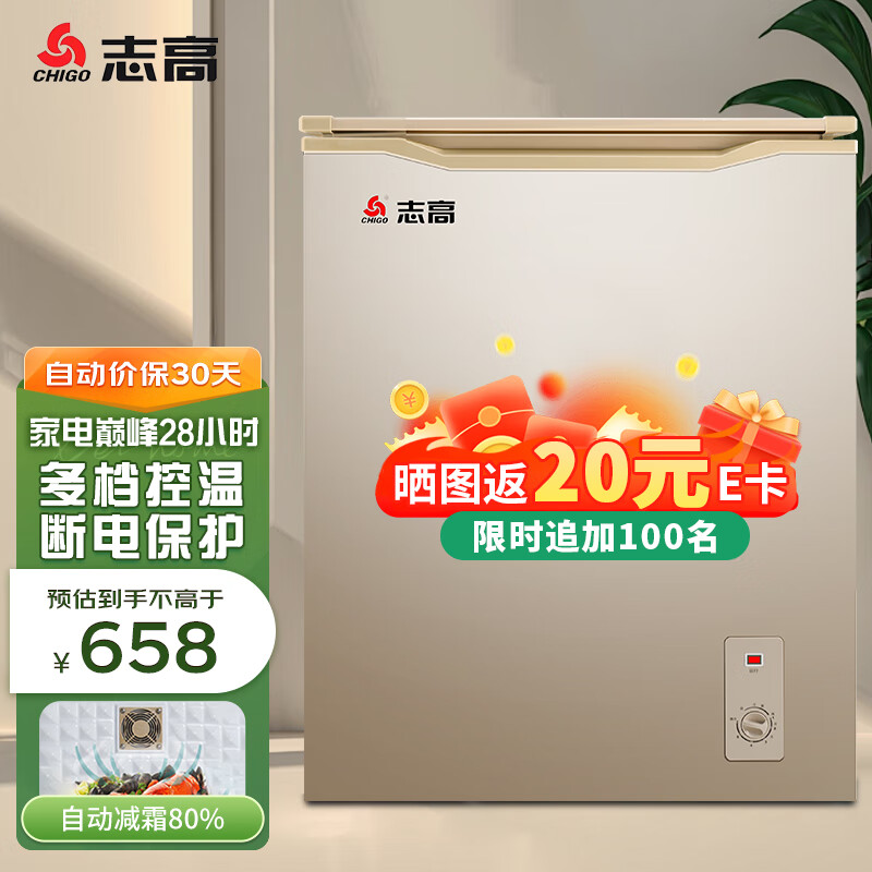 志高(Chigo)微霜专利认证冷柜 158升家用冰柜冷藏冷冻六档调节一级能耗单温小型冰柜 BD/BC-158DW价格:678.00元!