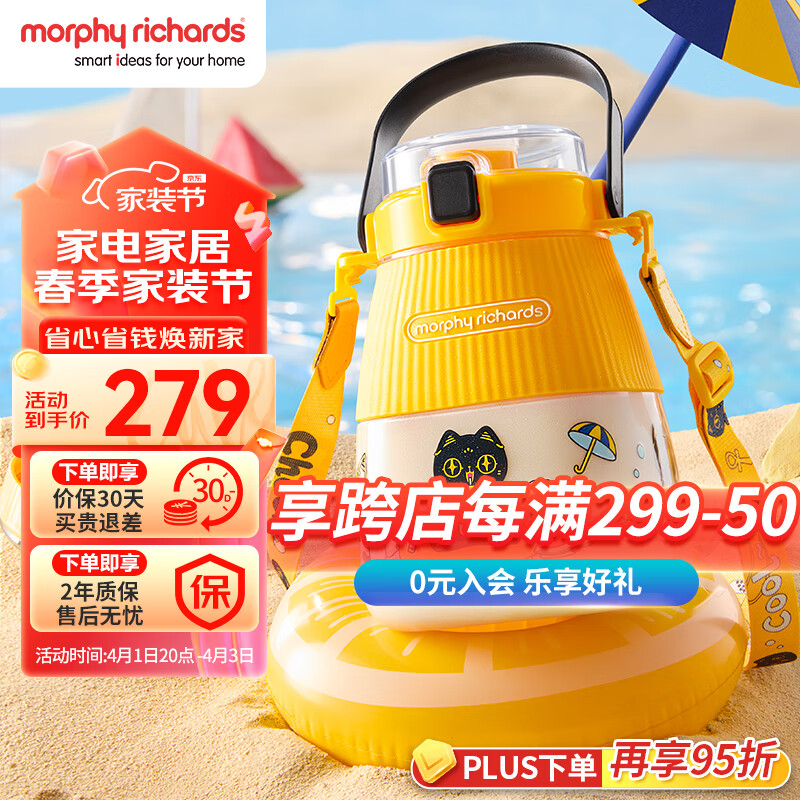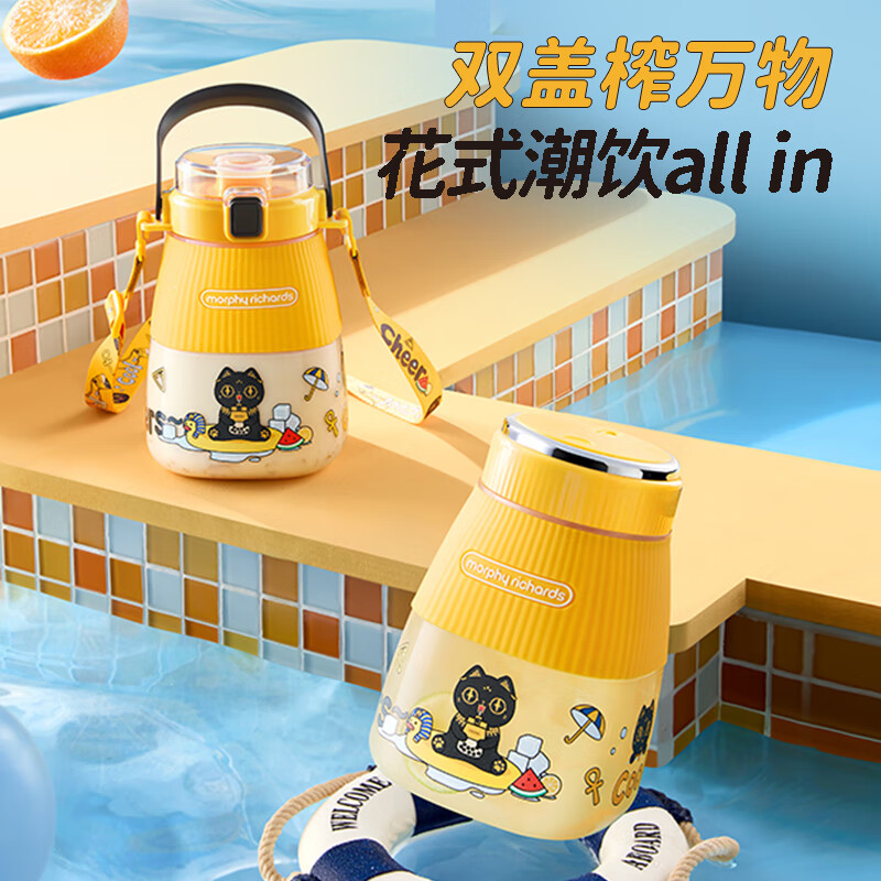 摩飞电器(Morphyrichards)榨汁机 榨汁桶便携榨汁杯无线充电果汁杯1升容量户外果茶迷你猫猫桶MR9806A 大英博物馆联名款价格:299.00元!