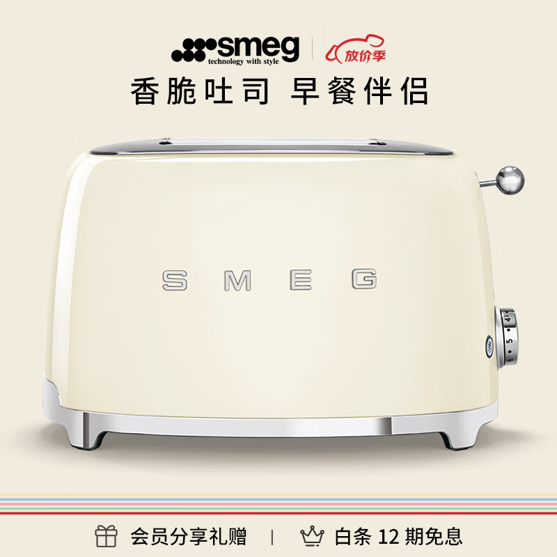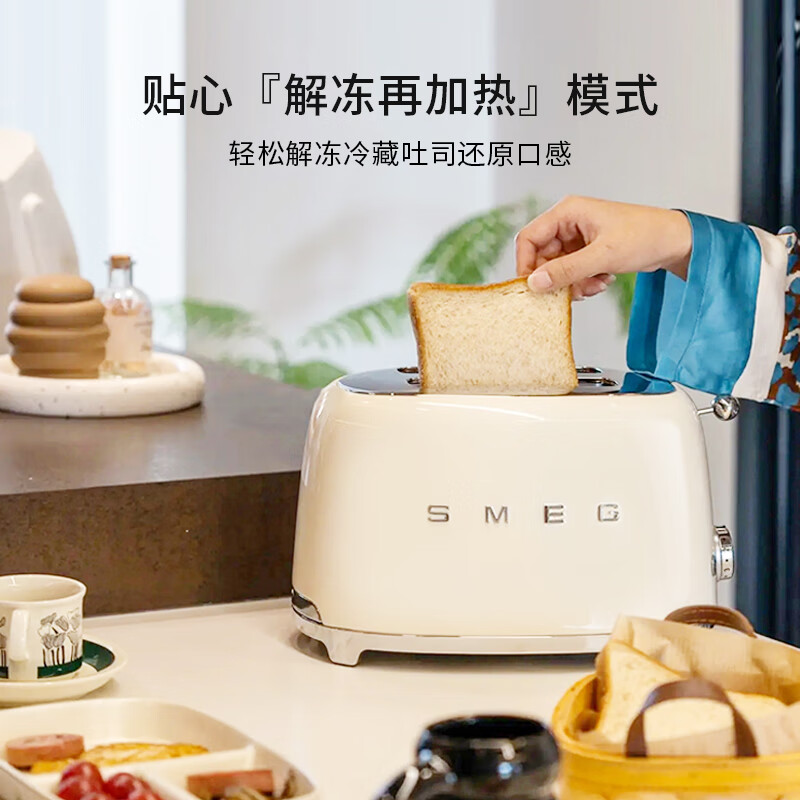 SMEG斯麦格 面包机营养早餐 家用多功能多士炉 厨房复古 烤三明治烘焙面包片吐司机 TSF01 生日礼物 奶白色价格:1699.00元!