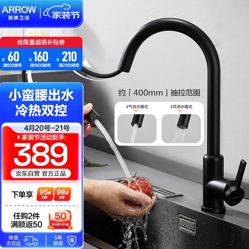箭牌(ARROW)304不锈钢厨房冷热抽拉式水龙头洗碗盆洗菜盆洗碗槽水槽防溅龙头 【双模出水】小蛮腰抽拉龙头价格:389.00元!