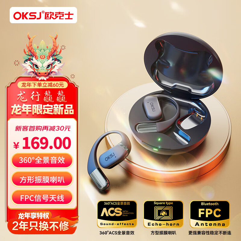 OKSJ【2024新升级·旗舰顶配款】 蓝牙耳机挂耳式骨传导概念不入耳开放式 无线运动商务通话舒适不漏音价格:259.00元!
