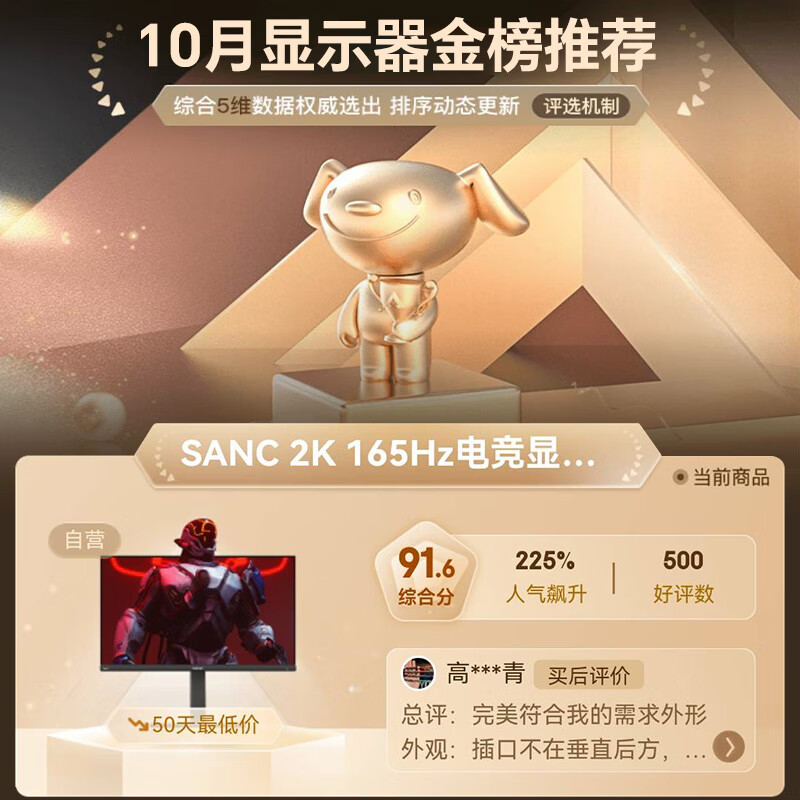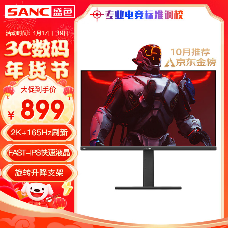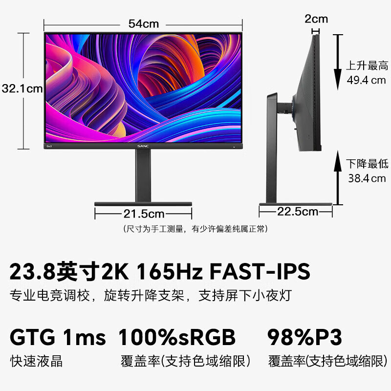 SANC 23.8英寸 2K 165Hz Fast IPS 快速液晶1Ms 广色域屏幕 旋转升降 小金刚 电竞显示器 G5c 2代价格:1099.00元!