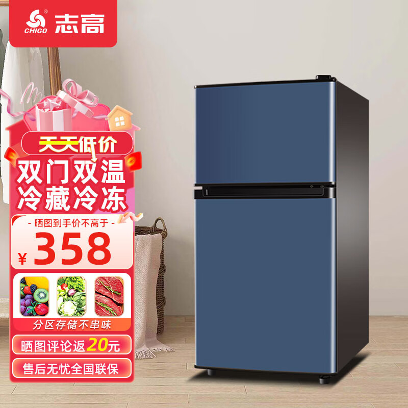 志高(CHIGO)43升小冰箱双门宿舍租房小户型家用 冷藏冷冻双开门 迷你电冰箱节能 小冰箱BCD-43A128LS 星空灰价格:388.00元!