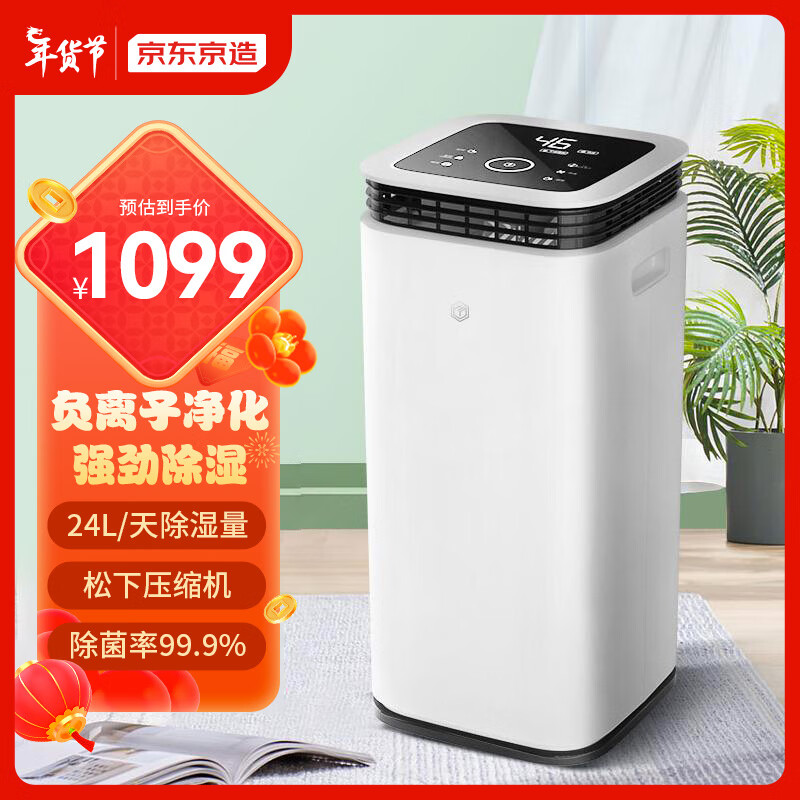 京东京造 除湿机/抽湿机 除湿量24升/天 负离子净化 24h定时 家用除湿器 抽湿器价格:1199.00元!