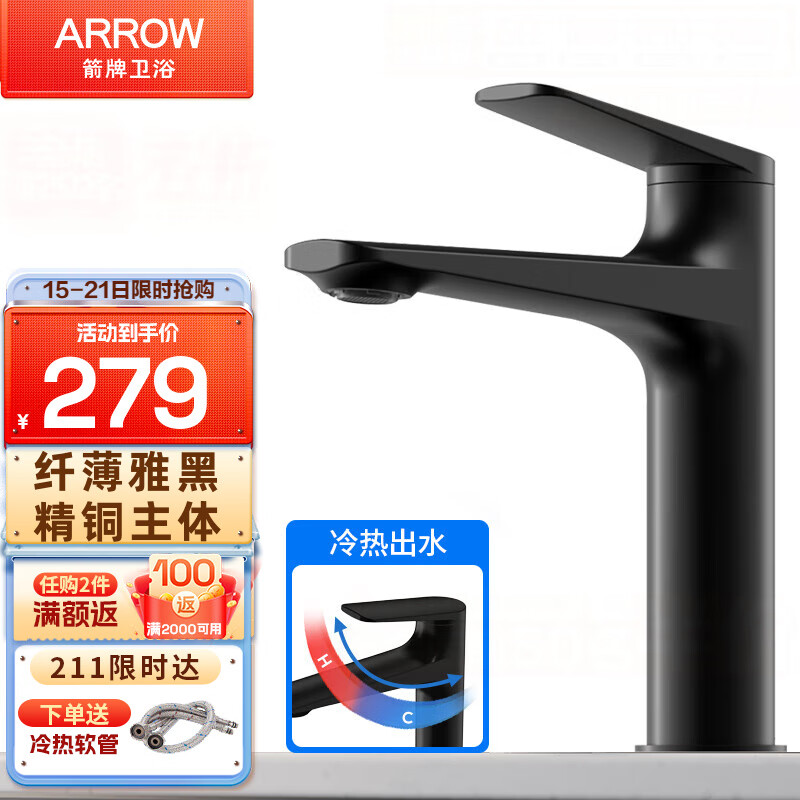 箭牌(ARROW)洗手盆水龙头冷热洗手间卫生间家用台上盆洗脸盆面盆龙头 雅黑-精铜面盆龙头价格:329.00元!