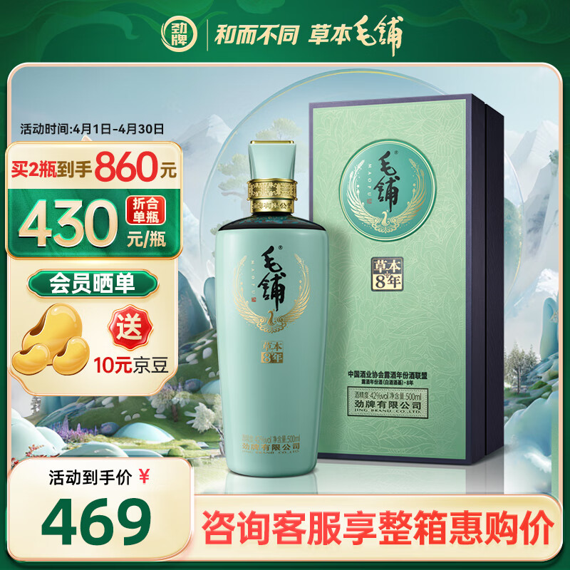 劲牌 毛铺苦荞酒 露酒 草本真年份 8年 42度 500ml价格:469.00元!