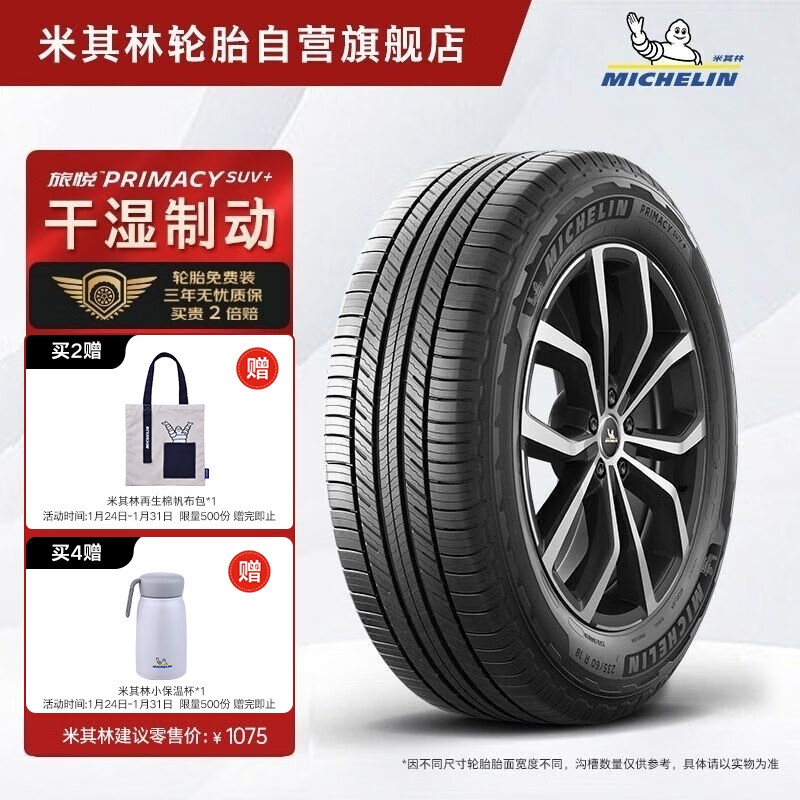 米其林(MICHELIN)轮胎 旅悦加强版PRIMACY SUV+ 235/60R18 103V 适配奥迪Q5价格:1019.00元!