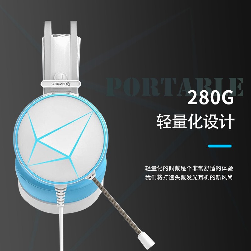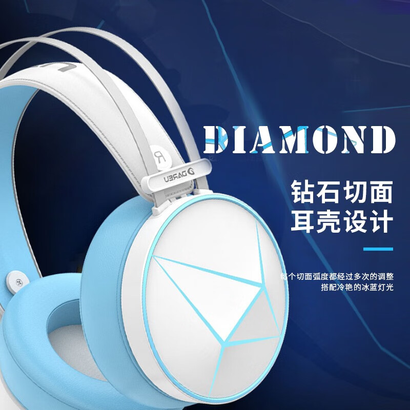 达尔优(dareu) EH722素洁蓝 游戏耳机 头戴式耳机带麦 电脑耳机 电竞耳机 虚拟7.1声道 USB接口 白蓝色价格:139.00元!
