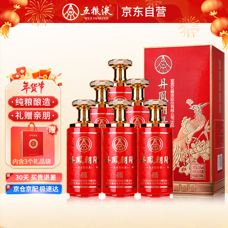 五粮液股份 丹凤朝阳凤来仪红 浓香型白酒52度500ml*6整箱装 内含礼品袋价格:364.00元!