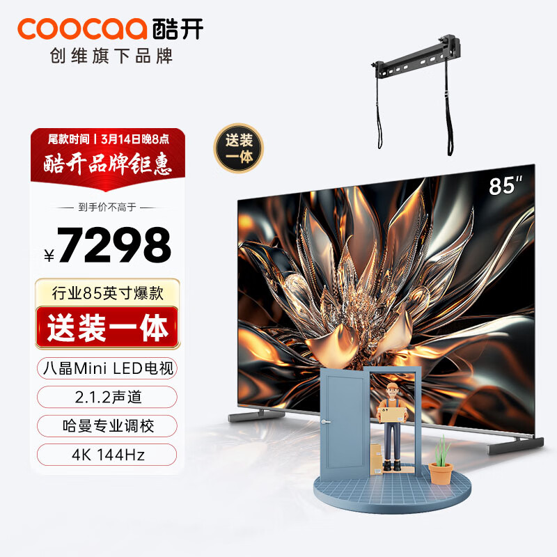 酷开 创维85K6 85英寸电视 送装一体 2000nits峰值亮度 720分区 4K144Hz高刷 液晶平板游戏电视机85P6E价格:7298.00元!
