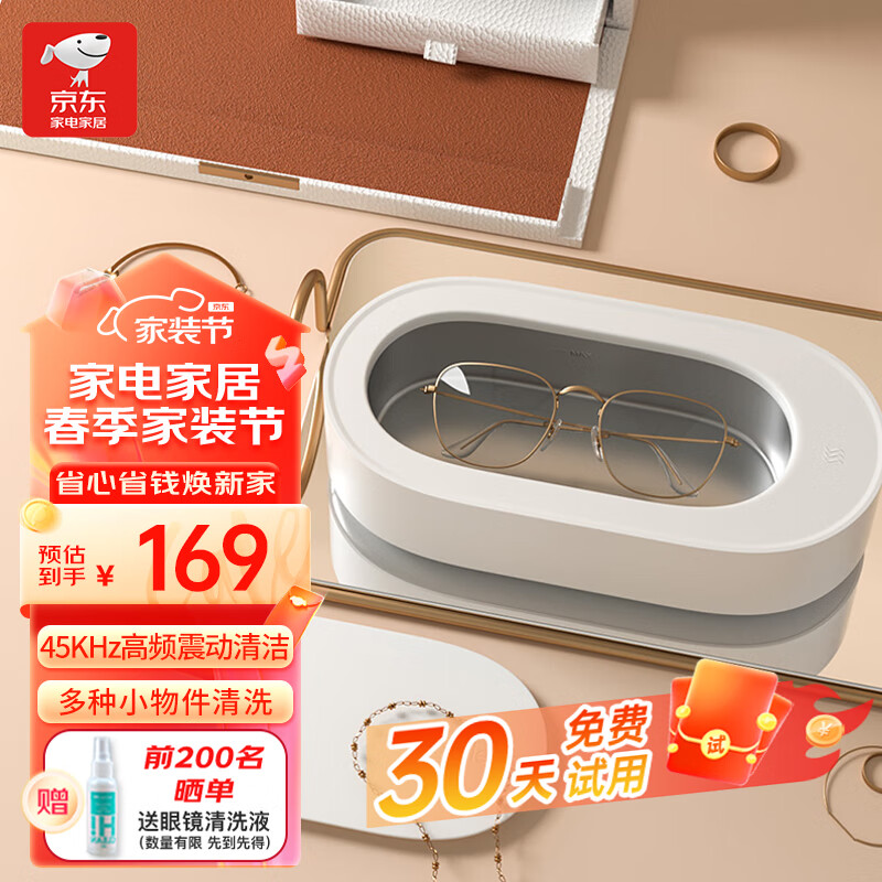 智选京品 EraClean 45000Hz超声波清洗机 洗眼镜器 首饰化妆刷假牙油污指纹残留 pro款价格:169.00元!