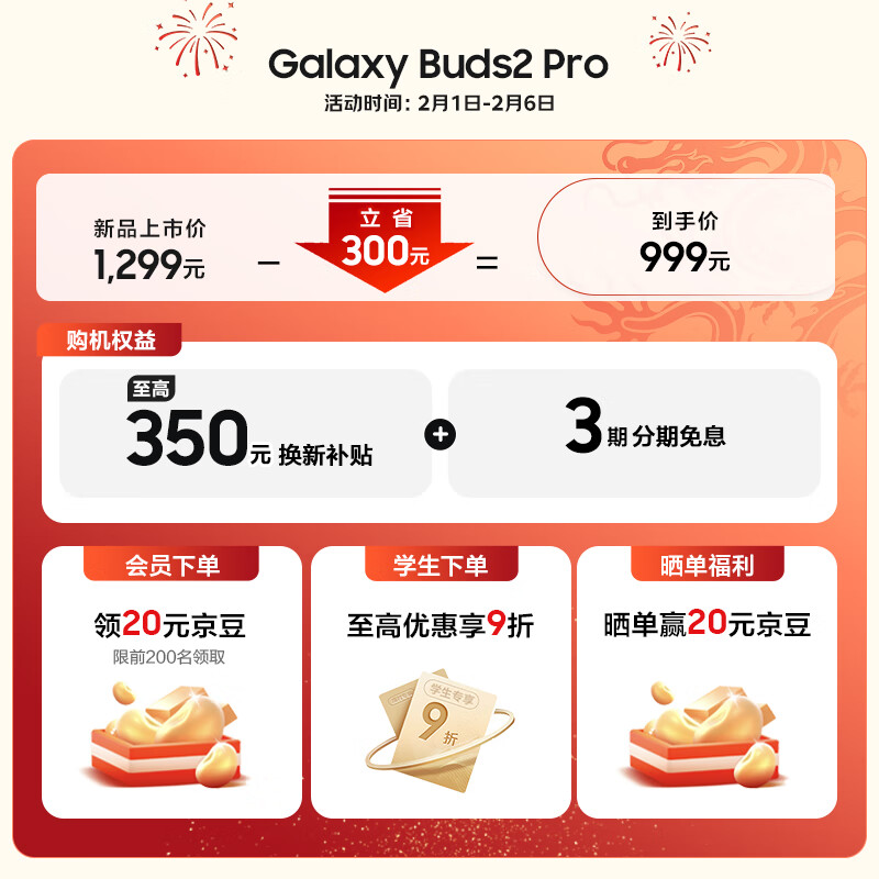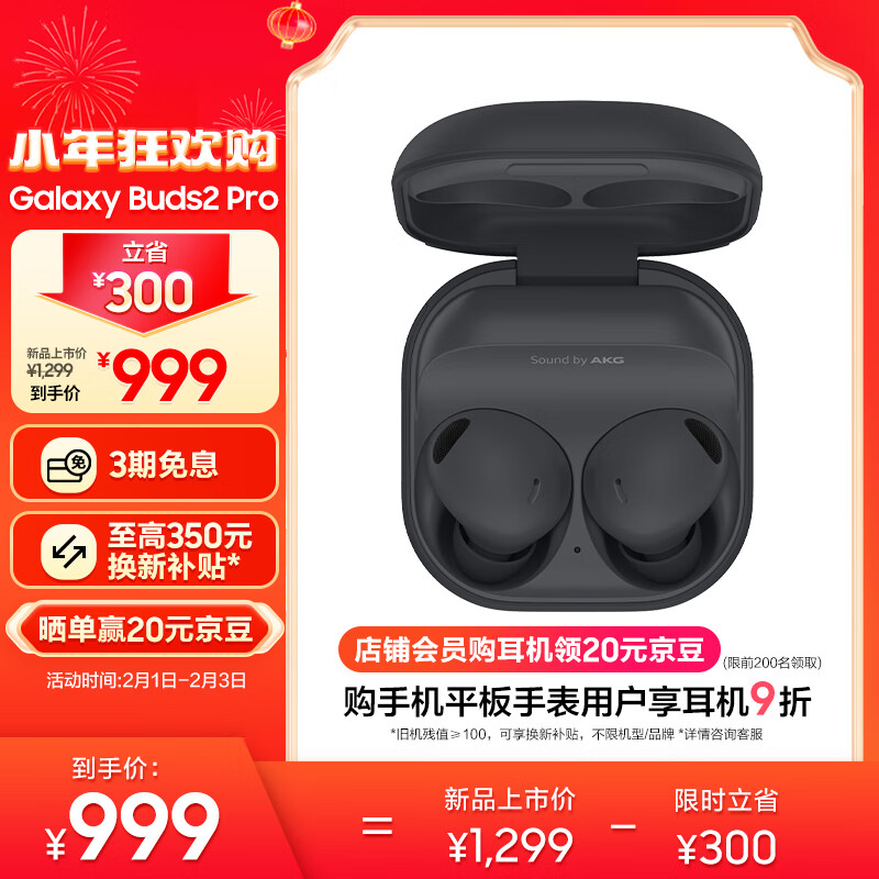 三星(SAMSUNG)Galaxy Buds2 Pro 智能主动降噪真无线蓝牙耳机/24bit高保真音频/IPX7防水/佩戴舒适 哥特太空价格:999.00元!