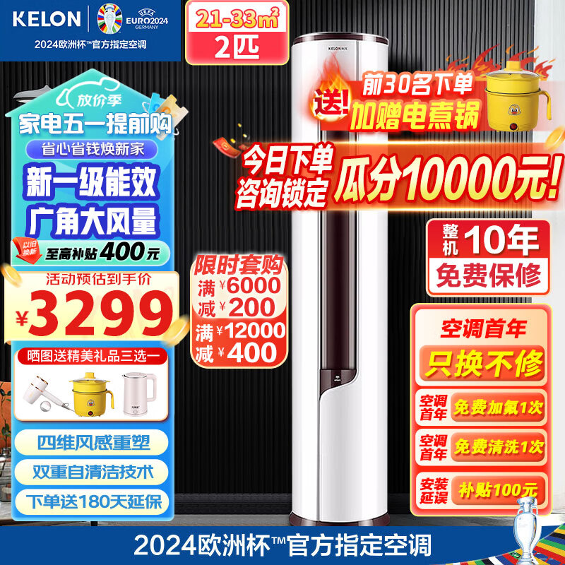 科龙(KELON)空调2匹新一级能效变频冷暖 客厅圆柱立式空调柜机自清洁大风量送风KFR-50LW/EFLVA1价格:3289.00元!