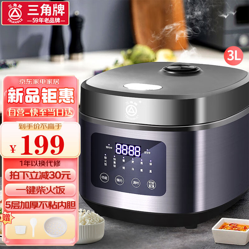 三角牌(Triangle)电饭煲家用 多功能智能迷你小型蒸米饭锅煮饭锅煲粥柴火饭预约不粘电饭锅灰色3L 2-4人用价格:229.00元!