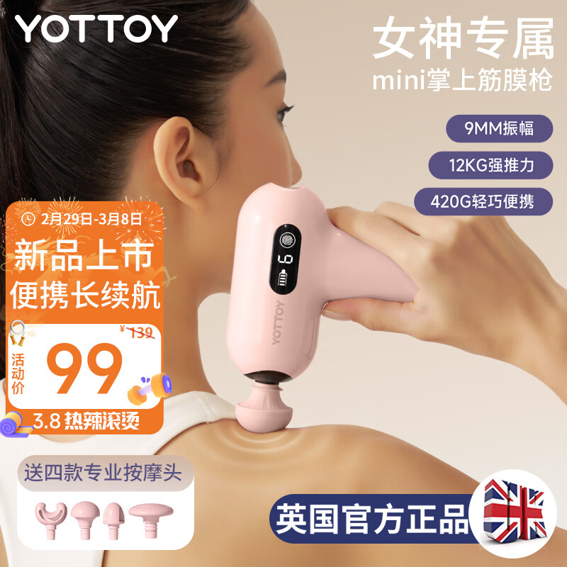 yottoy筋膜枪女生多功能肌肉按摩枪健身专业级女用迷你颈膜枪价格:109.00元!