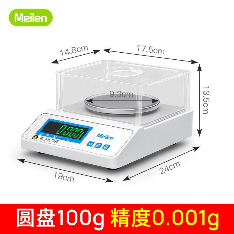 Meilen 电子天平0.01g0.001g高精度电子秤克称天平秤中药黄金珠宝秤实验室分析 圆盘-量程100g-精度0.001g-配防风罩砝码价格:449.00元!