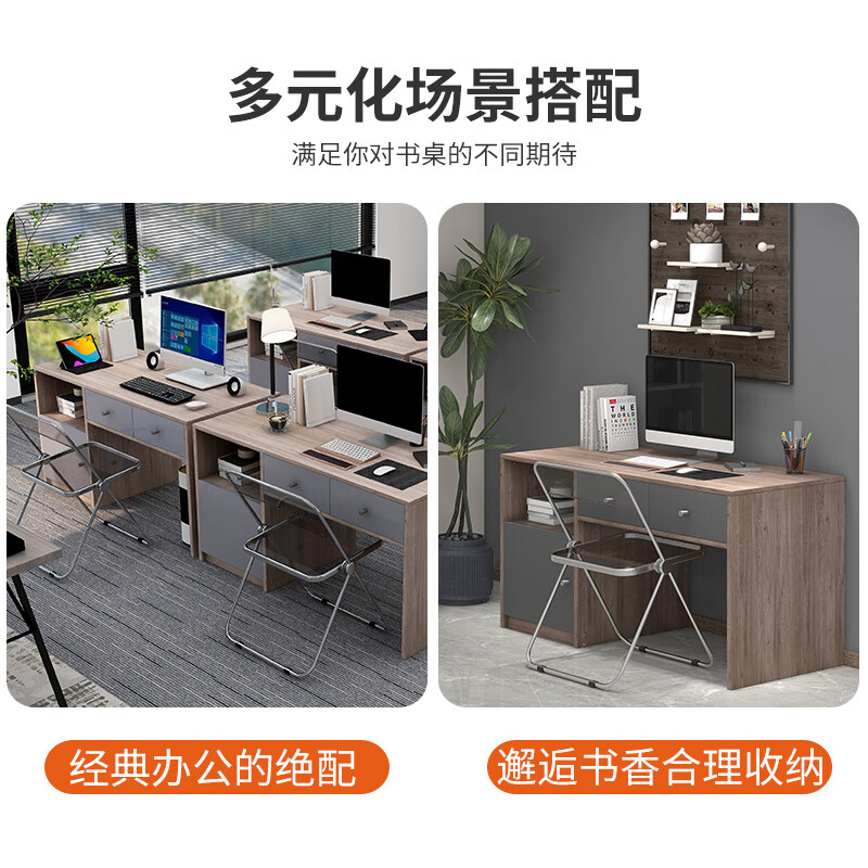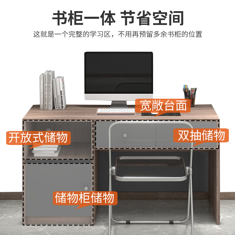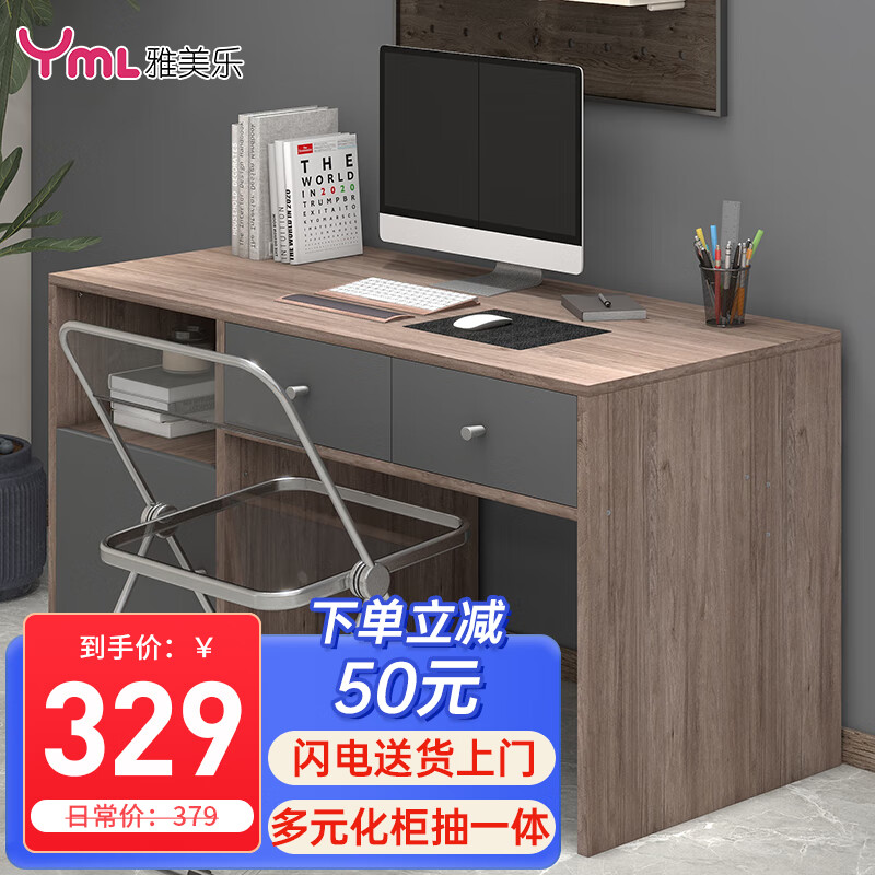 雅美乐写字书桌简约办公家用双抽屉书柜一体电脑桌学习桌子橡木色YSZ585价格:379.00元!