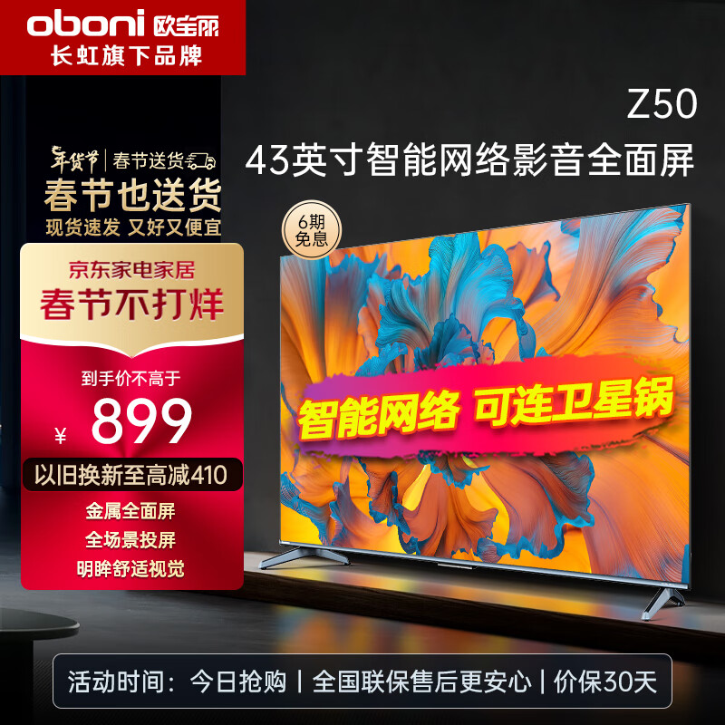 长虹欧宝丽43Z50 43英寸手机投屏在线观影高清平板液晶LED电视机价格:899.00元!